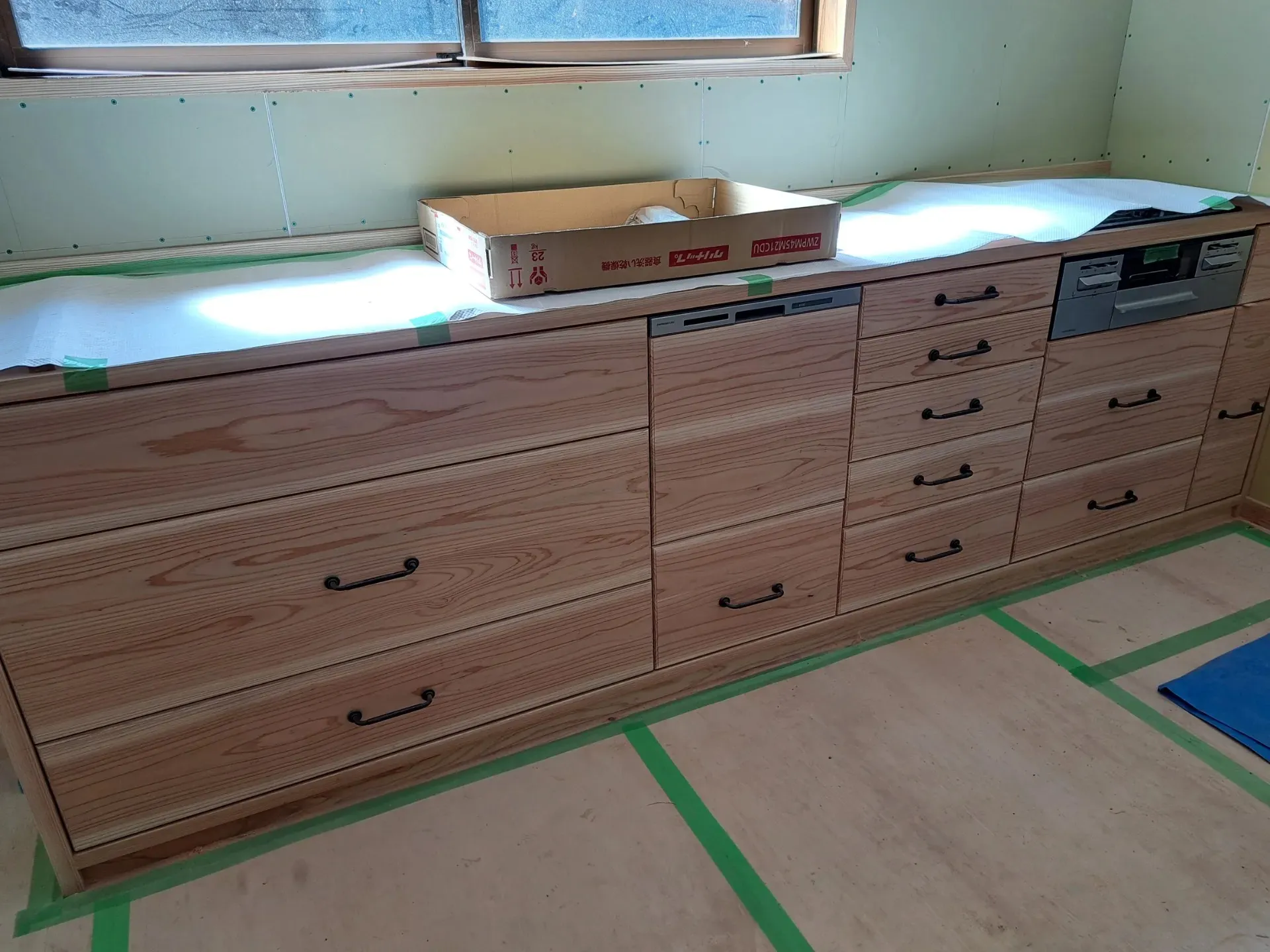 小倉南区で築100年ほどの古民家の再生をやっています。いつも思うのですがある程度解体していくと途中でリフォームしたところがまず間違いなく白蟻にやられ傷んでいます。今更ながら新建材の耐久性に疑問を感じずにはいられません。最近の長期優良住宅は床材12ミリか15ミリの下地に構造用合板を貼っているようですが果たして100年持つのかと言われれば?マークを付けざるを得ません。それだったら厚み30ミリ程度の赤身無垢材を使えばかなり長持ちします。浴槽もユニットバスが主流ですがやはり味わいというか雰囲気は左官で仕上げた浴室に軍配が上がります。水漏れ等を心配されるようですが下地にしっかりとした防水対策を施してやれば長期にわたり大丈夫です・古民家の場合、構造材は国産木材100パーセント、プラス良質の古材、新材は赤身材、浴室は左官さんで石張りや無垢の赤身木材、室内の壁はほぼ漆喰となるとここで問題となるのがキッチンです。それだけ自然素材にこだわってキッチンのみメーカーの塩ビシートの木目を印刷した商品でいいのかという疑問です。やはり総無垢材でフルオーダーでキッチンをつくった方がしっくり家になじみます。自社の大工で作ると意外と安くできます。もちろんいろんなノウハウがいりますが、写真は杉の無垢材で造ったフルオーダーキッチンです。細かな仕切りは市販のキットで対応しています。北九州及び近郊での古民家再生、フルオーダーキッチン、薪ストーブ設置、国産木材100パーセントの新築、古材と自然素材を使ったリフォーム等をご検討のお客様にはお気軽にお声がけをいただければ大変うれしく思います。