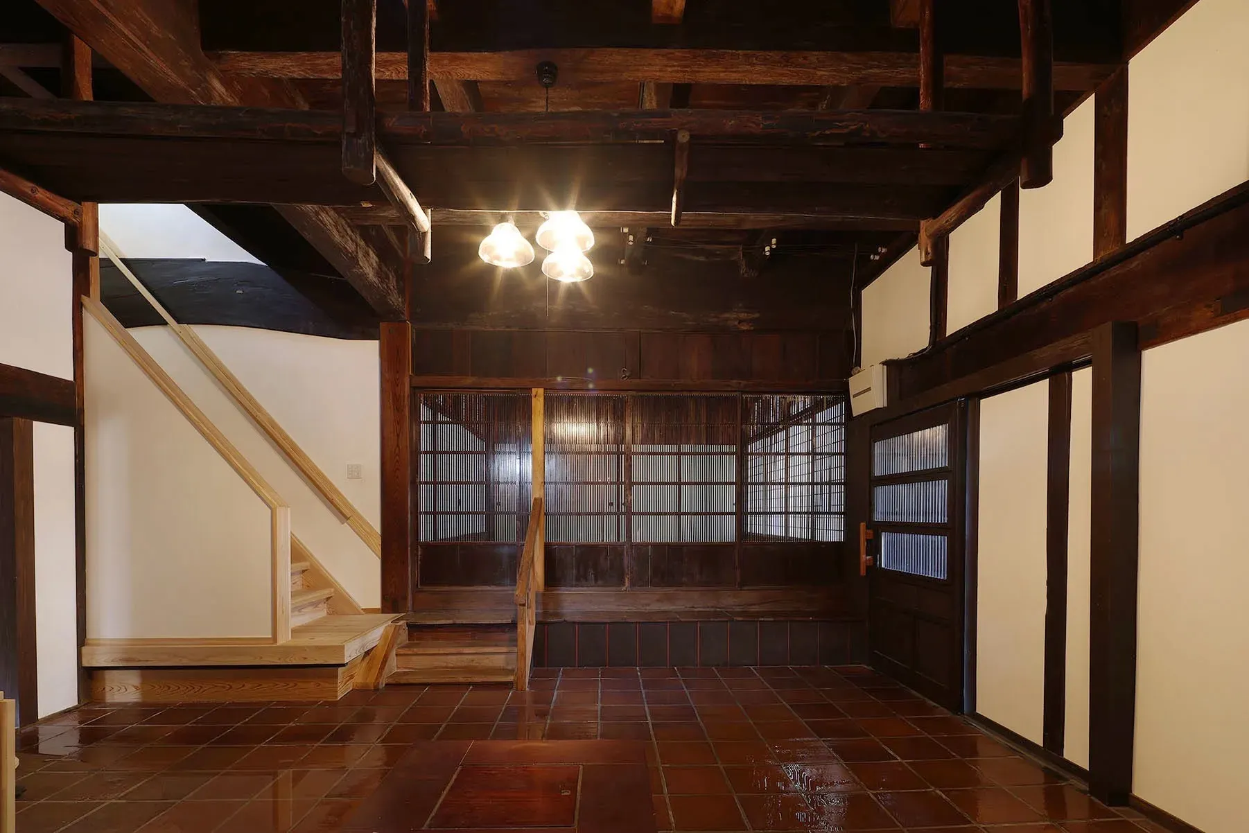 この度、ご縁があり宗像で明治時代に建てられた古民家の再生を1年近くかけて無事完成し引き渡しを致しました。足回りはほとんど腐っていたので新品に変え小屋組も腐れと白蟻にやられていた部分は全て撤去し新材に入れ替え元々の間取りを活かしながらの再生となりました。広い玄関土間は石州の敷瓦を敷き詰め囲炉裏を置き家族で楽しめる空間へと変貌しました。もちろん玄関戸は北陸から持ってきた総欅の蔵戸です。将来はここに薪ストーブを設置する予定です。屋根も下地から全てやりかえ元々あった寸丸瓦を再生し味わいとしています。夜、電球色でライトに照らされると何とも言えない暖かい空気に包まれます。北九州及び北九州市近郊の古民家再生は再生、古材を使った新築実績200件以上の当社へお気軽にご一報下さい。