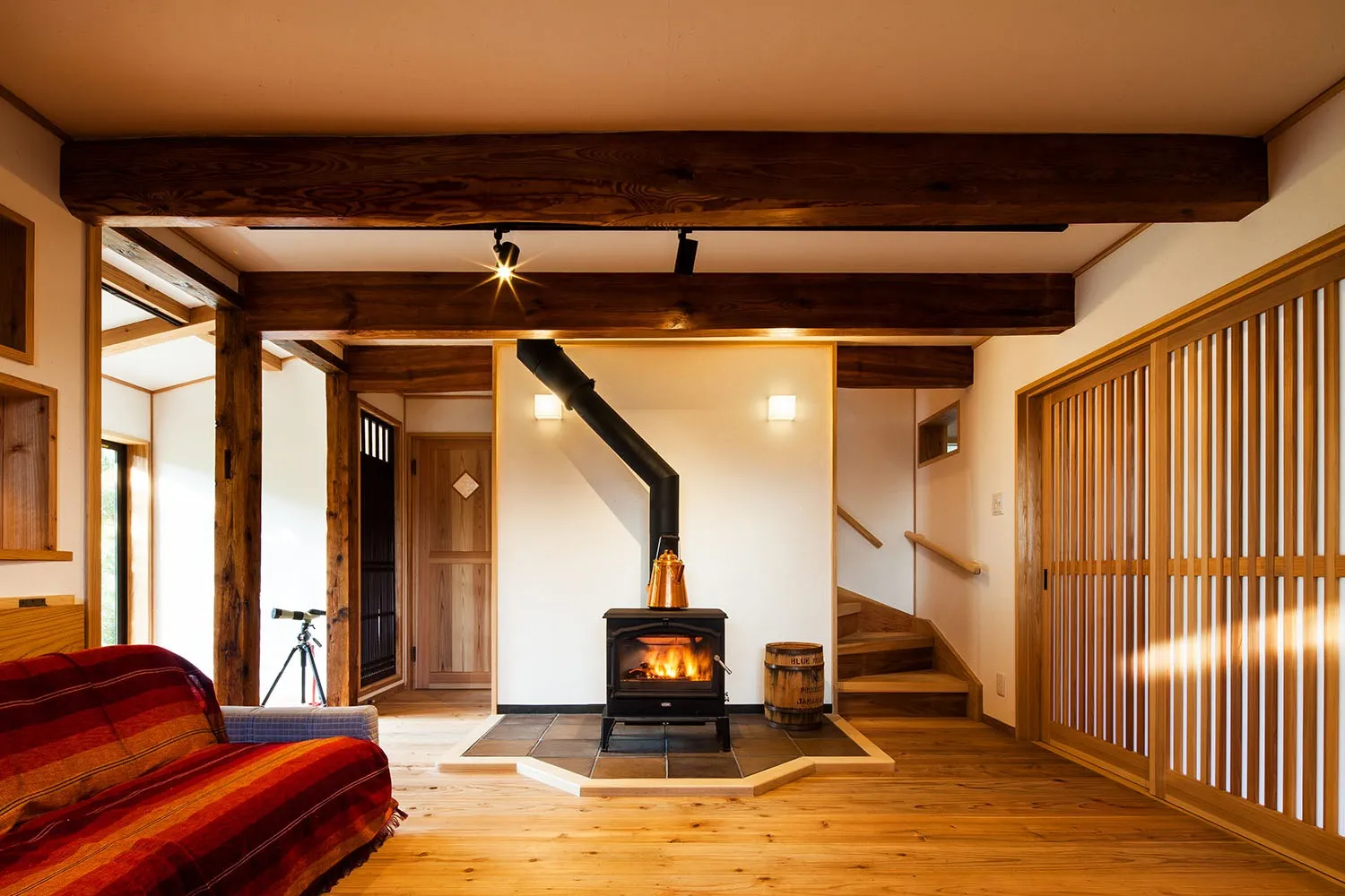 木材や漆喰などの自然素材から成る古民家と暖房効率の高い薪ストーブはお互いのよさを引き出します。吹き抜けや広々とした空間が多いと寒さが気になるケースがあるため、遠赤外線効果で身体を芯から暖め、建物全体をじんわりと暖めていく薪ストーブは相性の良い組み合わせです。炎で気になる乾燥も、木材が持つ調湿効果がカバーすると言われております。北九州のお客様にライフスタイルに合わせた薪ストーブの導入を提案しており、設置を前提としたリフォームのご相談も歓迎いたします。